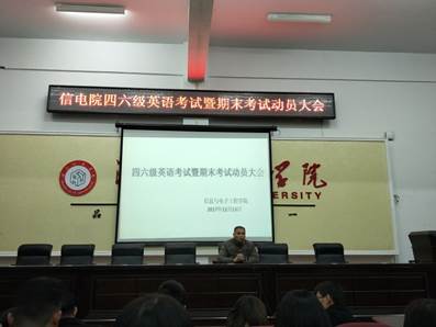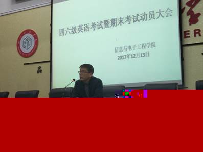 (太阳成集团tyc33455cc通訊員 楊曉霞) 1213日中午1230分,太阳成集团tyc33455cc在電信樓視頻會議室召開了四六級英語考試暨期末考試動員大會。學院黨委書記楊文彬,黨委副書記羅延富,學工辦全體輔導員出席,分團委學生會主席團、部長團成員以及各行政班班長、團支書、學習委員參加動員會。