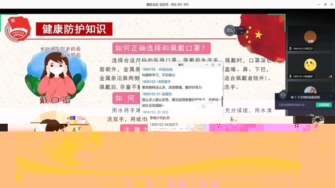 本次團日活動主題是“磨砺出彩青春,奮進偉大時代”。共圍繞着“不忘初心,勇擔使命”、“五四精神,傳承有我”、“學習榜樣,領悟初心”、“遵紀守規,平安返校”、“分享心得,感悟未來”五個小标題展開。各班團支書對政治學習PPT進行講解,同學們認真觀看學習内容,在直播讨論區探讨自己的看法。本次政治學習之後,大家對青春的使命與擔當有了更深的了解。青年人應不忘初心,牢記使命,勇擔責任,疫情期間可以貢獻自己的一份力量,将五四精神發揚光大。