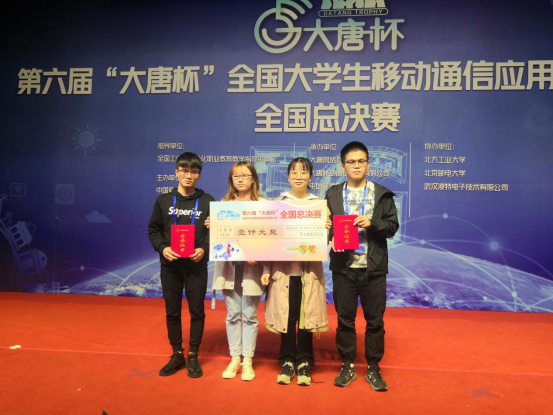 10月19日至20日,第六屆“大唐杯”全國大學生移動通信應用創新大賽全國總決賽在北京舉行,太阳文兵、趙政春老師指導的隊伍(參賽學生:歐陽從江、谌民迪、徐金玉、方欣)以優異的成績榮獲全國總決賽一等獎。