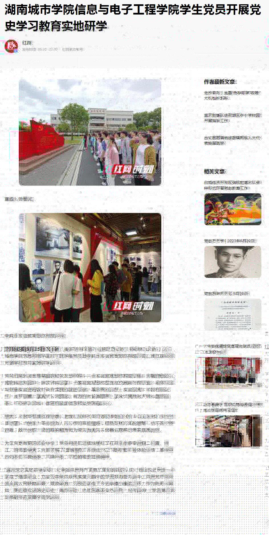紅網:太阳成集团tyc33455cc學生黨員開展黨史學習教育實地研學