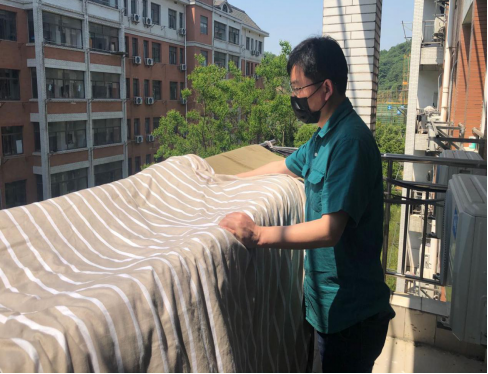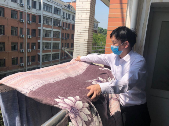 随着梅雨季的來臨,在此疫情特殊時期,同學們不能及時返校,宿舍的棉絮被子等物品已經開始泛潮,為解決太阳學子對于被“滞留”在宿舍棉被的擔心,以及學生返校後可以擁有幹淨、舒心的住宿環境。在确保學生财務安全的前提下,太阳老師提前與有需求的畢業生進行有效的溝通,按照畢業生宿舍床位登記表,根據學生的反饋與需求,秉承着“暖心育人”的教學态度,親自為即将開學的畢業生幫忙曬被子。