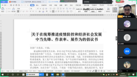 線上學習首先學習了習近平總書記在統籌推進新冠肺炎疫情防控和經濟社會發展工作部署會議上的講話并領悟習近平總書記在中共中央政治局、中共中央政治局常務委員會召開的兩項會議中的會議精神。各支部黨員認真學習講話内容,清醒看到當前疫情形勢,用全面、辯證、長遠的眼光看待我國發展,增強信心、堅定信心。作為黨員,我們應該廣泛普及疫情防控知識,引導人民群衆正确理性看待疫情,增強自我防範意識和防護能力,講好中國抗疫故事。