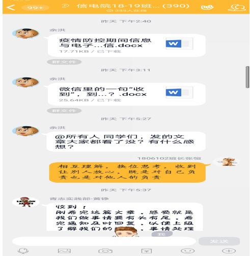 最後,餘洪老師強調新冠肺炎疫情防控工作是一場總體戰,是一場沒有硝煙的人民戰争,需要大家上下同心抗疫、共克時艱!前方抗疫的醫護工作者和解放軍為了抗疫,有的犧牲了自己的生命、有的連續工作近一個月。同學們積極配合做好疫情防控工作和完成線上學習任務,就是對國家抗疫的支持,就是愛國
