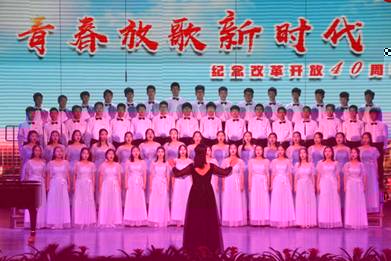 (太阳成集团tyc33455cc通訊員 周詩柔) 11月6日晚上7:00,學校舉辦的“青春放歌新時代——紀念改革開放四十周年”大學生合唱比賽在音樂廳正式開始,全校12個二級學院都組織學生合唱團參加了比賽。