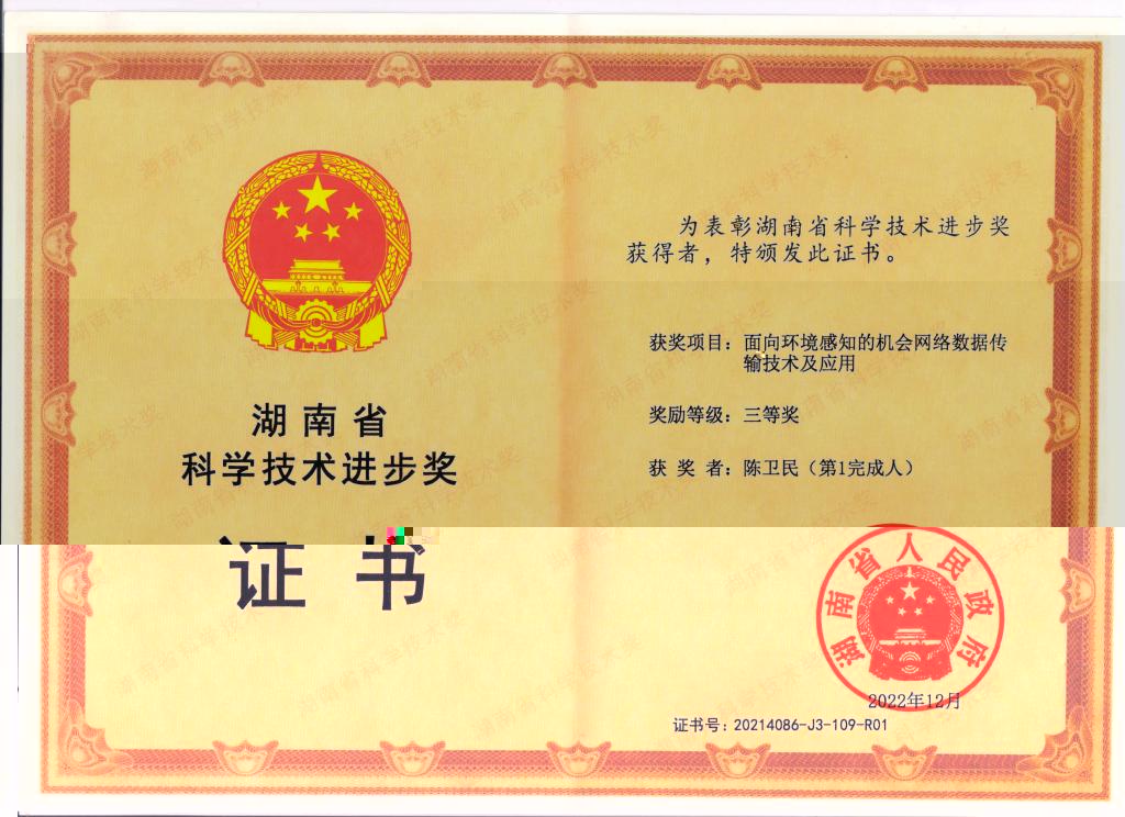 支部黨員陳衛民榮獲湖南省科學技術進步獎三等獎(第一完成人)